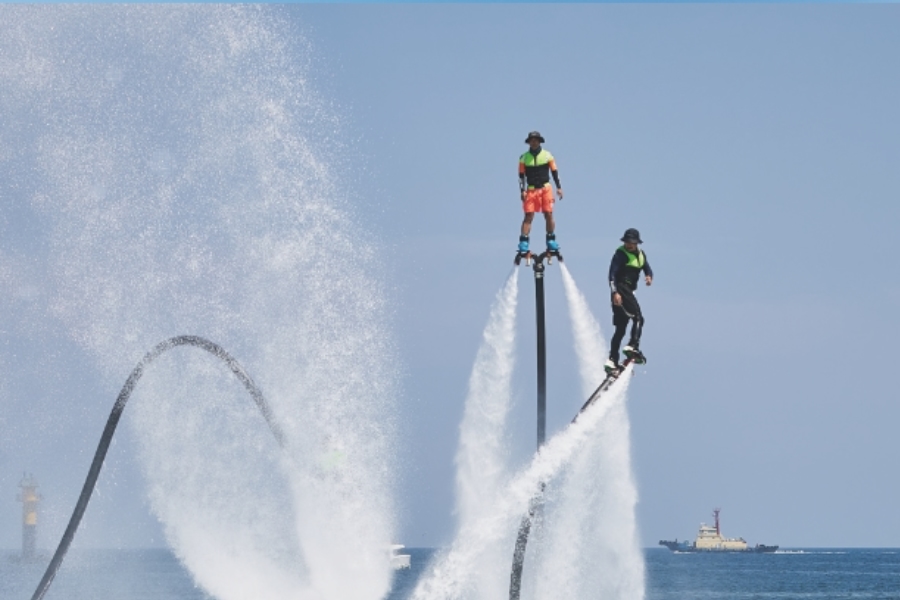 울산조선해양축제의 가장 큰 매력은 바로 '조선'과 '바다'라는 테마를 살린 독창적이고 다채로운 핵심 프로그램들입니다. 매년 조금씩 변화는 있지만, 축제의 정체성을 대표하는 인기 프로그램들은 꾸준히 사랑받고 있습니다. 그중에서도 단연 눈에 띄는 것은 '기발한 배 콘테스트'입니다. 참가자들이 직접 만든 독특하고 창의적인 디자인의 배를 타고 일산해수욕장 앞바다에서 경연을 펼치는 이 프로그램은 보는 이들에게 큰 웃음과 즐거움을 선사합니다. 톡톡 튀는 아이디어와 함께 팀워크를 발휘하여 직접 만든 배로 바다를 누비는 모습은 울산조선해양축제에서만 볼 수 있는 특별한 광경입니다. 또한, 일산해수욕장 SEA PLEX인근에서 펼쳐지는 플라이 보도쇼와 SUP강습, 투명카약등의 '해양레포츠 체험'은 축제의 뜨거운 열기를 더하는 인기 프로그램 중 하나입니다. 넓푸른 바다 한복판에 공중을 자유롭게 나는 플라이 보드쇼는 무더운 여름을 시원함을 전달하기에 충분한 볼거리이며, 카약, 패들보드 등 평소 접하기 어려웠던 해양 스포츠를 전문 강사의 지도 아래 안전하게 체험해 볼 수 있어, 시원한 바다를 더욱 적극적으로 즐길 수 있는 기회를 제공합니다. 이 외에도 국내 최고 DJ들의 환상적인 공연과 대형 물대포로 한여름의 무더위를 날려버릴 일산 비치 워터밤 행사와 강렬한 EDM 비트에 맞춰 더위와 스트레스를 한 방에 날려버릴 DJ 댄스 공연이 펼쳐집니다. 그리고 개막일 7월 18일에는 축제의 밤을 화려하게 수놓는 '해상 불꽃쇼'가 진행됩니다. 특히 해상 불꽃쇼는 아름다운 일산해수욕장의 밤바다를 배경으로 펼쳐져 환상적인 분위기를 자아내며, 많은 방문객들에게 잊지 못할 감동을 선사합니다. 축제 기간 동안에는 유명 가수들의 축하공연이나 지역 예술인들의 다채로운 문화 공연도 함께 열려 볼거리를 더욱 풍성하게 만듭니다.
